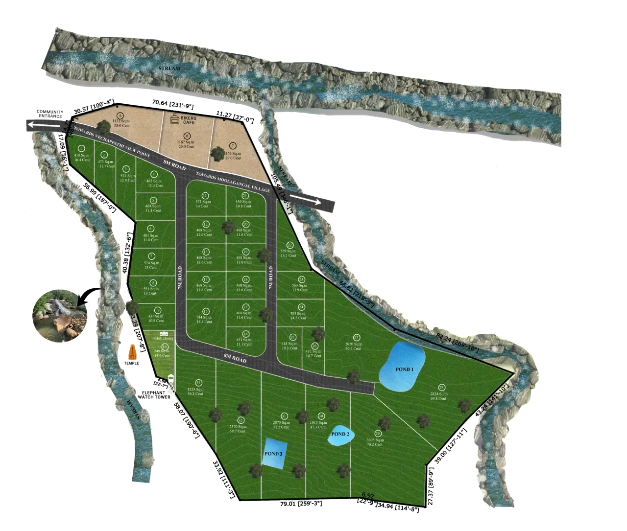 Our eco-conscious community plots offer an immersive experience with lush green landscapes as their backdrop, creates mindful living and well-being while providing an investment opportunity that is both low-impact and promising for the future.